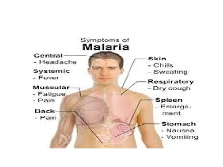 Diagnosa malaria • Diagnosis malaria umumnya didasarkan pada manifestasi klinis (termasuk anamnesis), uji imunoserologis dan ditemukannya parasit (plasmodium) dalam darah penderita. Manifestasi klinis demam malaria seringkali tidak khas dan menyerupai penyakit infeksi lain seperti demam dengue dan demam tifoid, sehingga sulit dilakukan diagnosa dengan mengandalkan pengamatan secara klinis saja, namun perlu dilakukan pemeriksaan laboratorium untuk menunjang diagnosis malaria sedini mungkin.