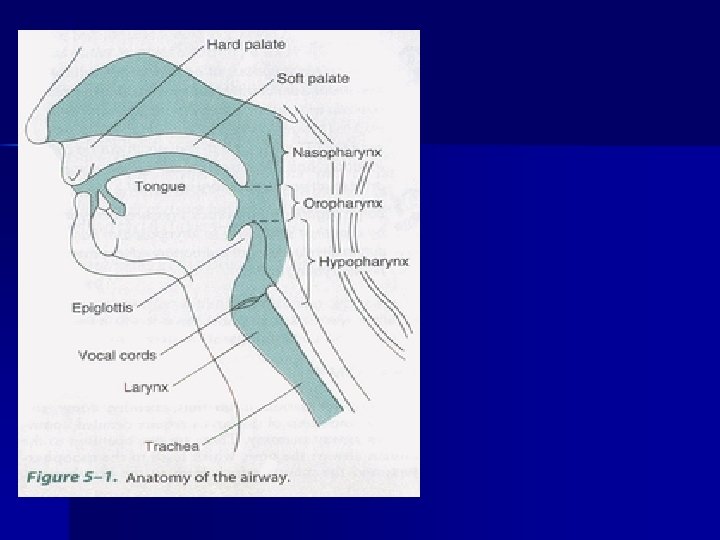 Infant and Child Considerations n n n Mouth and nose - generally all structures are smaller and more easily obstructed than in adults. Pharynx - infant’s and children’s tongues take up proportionally more space in the mouth than adults. Trachea - (windpipe) – Infants and children have narrower tracheas that are obstructed more easily by swelling. – Trachea is softer and more flexible in infants and children.