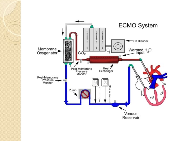 �Kanın vücut dışında yapay bir akciğer ile ventile edilip vücuda geri verilmesi esasına dayanır �Venoarteriyel (VA) – venovenöz (VV) �Dolaşım yetmezliklerinde VA; solunum yetmezliğinde VV veya VA yöntem tercih edilir.