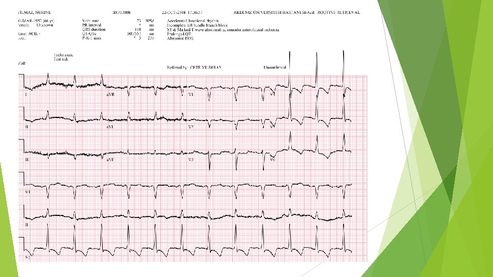 Ø 66 y kadın hasta Ø Şikayeti: Ø Bulantı kusma sol yandan sol bacağa kadar devam eden ağrı