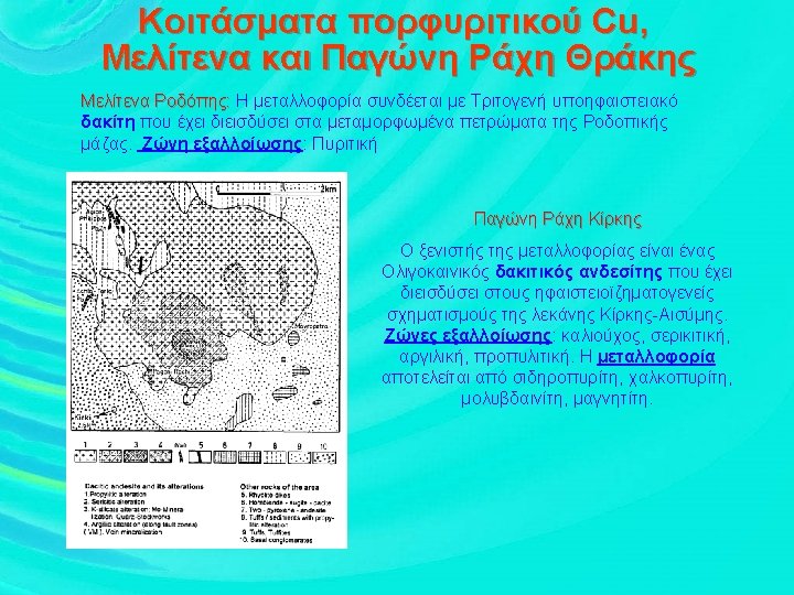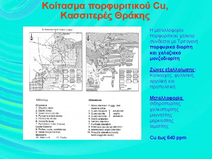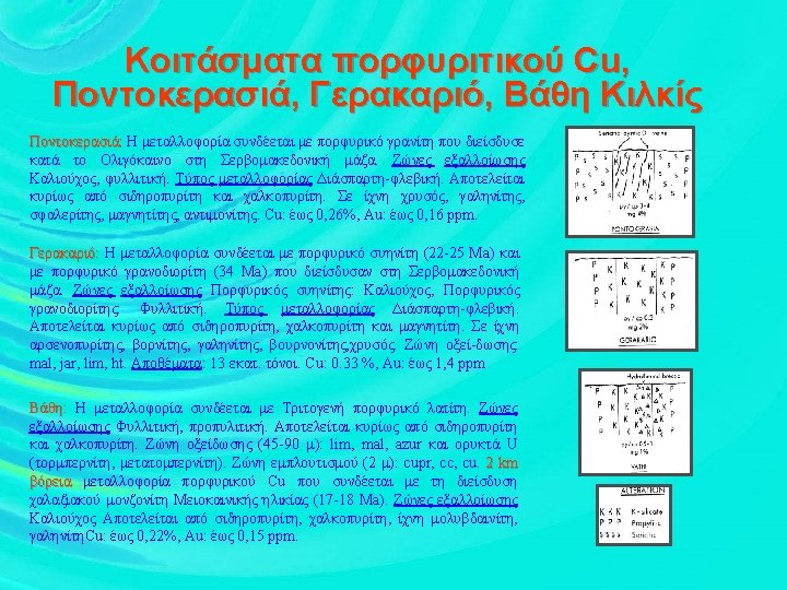 Distribution of Cu, Mo, Fe, Pb, Zn, Au and Ag in drill-hole 1 from Maronia porphyry deposit (chemical anlyses from HCPFC, unpublished data) Surface samples of altered rock contain as much as 7, 600 ppm Mo, Mo 5, 460 ppm Cu and 1 ppm Au. Au Geochemical data from a drill-core revealed a 10 -mthick horizon containing as much as 12 ppm Au, Au 17 ppm Ag and 2. 00 % Cu