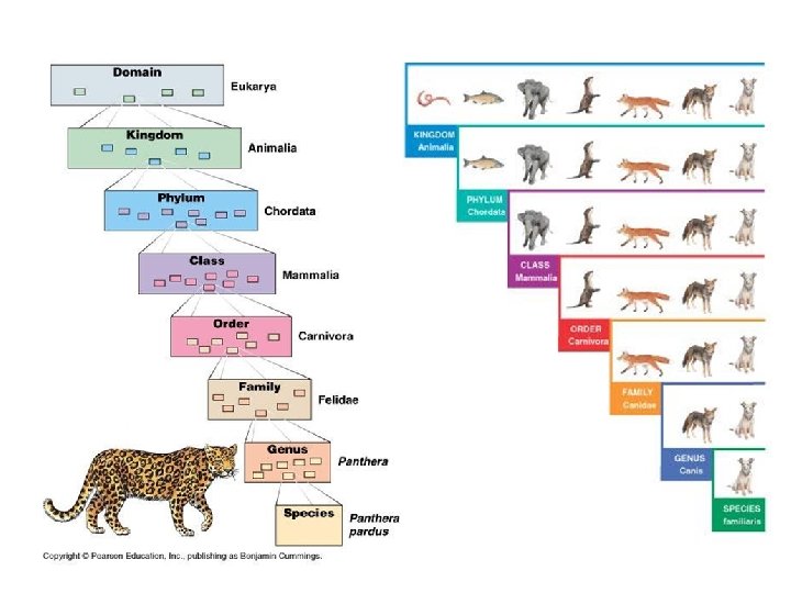 Organismerna i ett Rike kan sedan delas in i: • Stam, Klass, Ordning, Familj, Släkte , Art