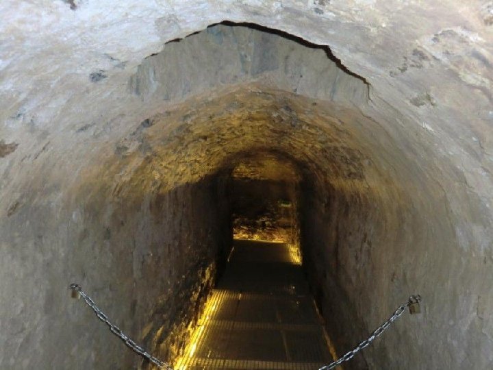 Creusé au début du XIème siècle, cet étonnant tunnel atteint 240 mètres de long, 3 mètres en hauteur et en largeur. L'appareillage de schiste avec clé en pierre du champ, nous révèle l'habileté des ouvriers de l'époque.