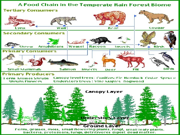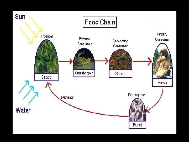 Feeding Relationships Consumer- all heterotrophs: they ingest food containing the sun’s energy ØHerbivores ØCarnivores ØOmnivores ØDecomposers