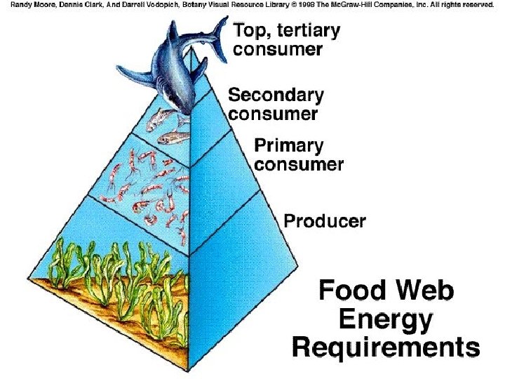 E N E R G Y Trophic Levels Tertiary consumers- top carnivores Secondary consumerssmall carnivores Primary consumers- Herbivores Producers- Autotrophs