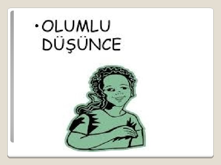 OLUMLU DÜŞÜNCENİN GÜCÜ © Olumlu Düşünme, bilinçaltı zihnimizin yönlendirebilme yeteneğini olumlu biçimde kullanmaktır. © Olumlu Düşünme, kendinizi ve başkalarını sevmek çevrenizdeki insanlarla ilgilenmek demektir.