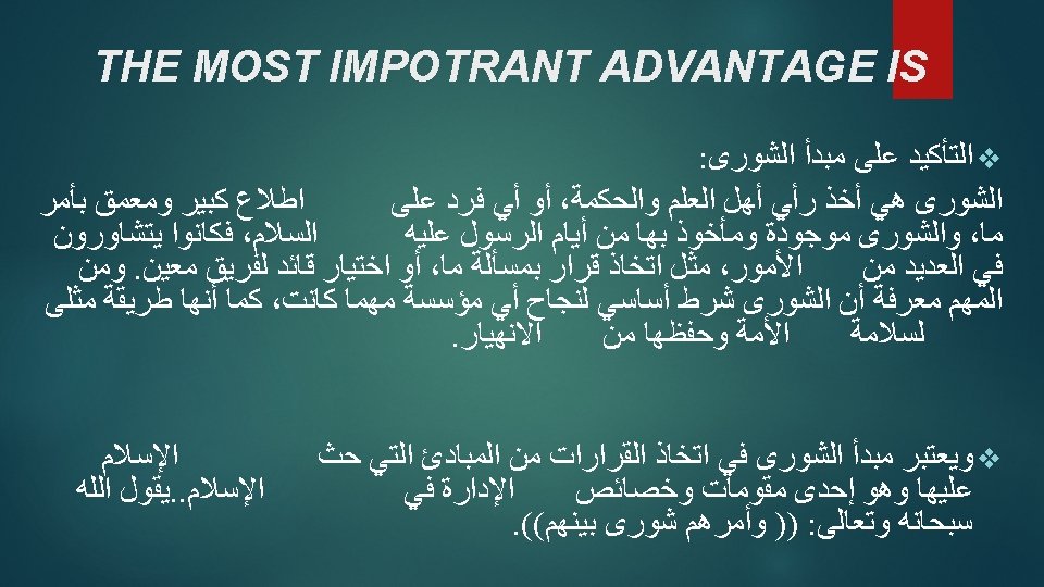 THE ADVANTAGES v The collective approach to decision-making results in a sense of satisfaction among the parties involved in the decision and improves the group's understanding of the decision-making mechanism and improves communication between individuals and administrative units in the enterprises in which they operate.