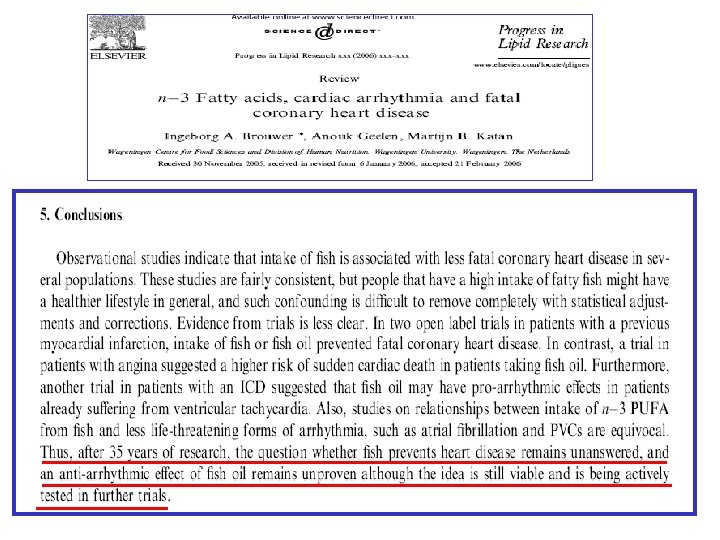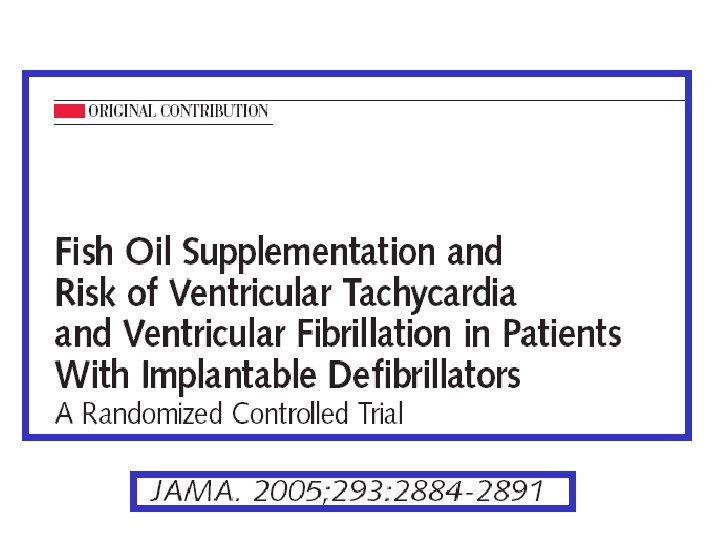 Experts comments • “fish oil supplementation in ICD patients continues to be an ‘evolving area’…. ” • “there are no definitive data at this point”…. . • ”there are supporting data for both positions”. Dr. Douglas Zipes – Indiana University School of Medicine, Indianapolis. Heart wire Nov. 4, 2005.