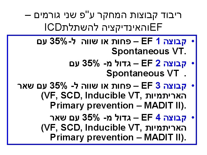 At 6, 12, and 24 months, 46%, 51%, and 65% of patients assigned to receive fish oil had ICD therapy for VT/VF, compared with 36%, 41%, and 59% for patients assigned to receive placebo (p = 0. 19). In the subset of 133 patients whose qualifying arrhythmia was VT, 61%, 66%, and 79% of patients in the fish oil group had VT/VF at 6, 12, and 24 months, respectively, compared with 37%, 43%, and 65% of patients in the placebo group (p = 0. 007). In addition, the number of days with episodes of. JAMA. ICD therapy for VT/VF was significantly greater in the fish oil group than in Raitt et al. 2005; 293: 2884 -2891.