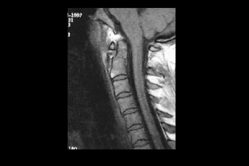 Direkt grafi • • Omurga kanalı ön-arka çapını (13 mm. ) Omurların kontur ve düzlemlerini Kanal içindeki kemik parçacıklarını Lamina, pedikül veya nöral arkların basit veya ortak kırıklarını • Yumuşak doku mesafesinde artmayı – erişkin; C 1=10 mm, C 2 -4=5 -7 mm, C 5 -7=22 mm. – Çocuk; C 1 -4= değişir, C 5 -7=14 mm.