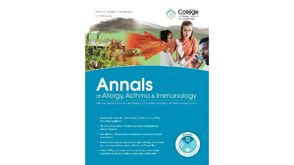 On the Surface Key Messages • The commensal-epidermal homeostasis within healthy skin protects against allergic disease by inducing epidermal accumulation of commensal-specific type 1 and type 17 immune cells and increasing the expression of antimicrobial peptides and alarmins that target proallergic bacteria. • The composition of skin microbiome and epidermal barrier integrity are interdependent, and disruption in one (eg, filaggrin mutations or dysbiosis) disrupts the other. • Skin microbiome dysbiosis contributes to progression and exacerbation of allergic diseases, such as atopic dermatitis, food allergy, allergic rhinitis, and asthma. • Current and potential treatments affecting the skin microbiome include emollients, restoration of skin commensals and antimicrobial peptides, and anti-TH 2 biologic therapy. • Maintenance of the skin barrier is the primary prevention for the development or exacerbation of atopic disorders; however, studying preventions targeting the skin microbiome is needed. De. Vore, et al. Ann Allergy Asthma Immunol. December 2020; 125(6): 628 -638