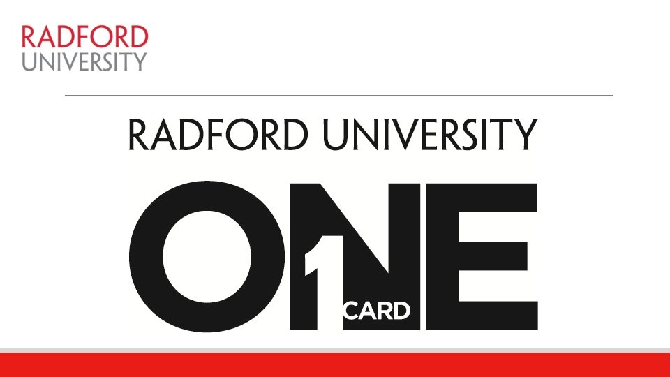 ONE Card Office v Radford University’s ONE Card is the student’s key to the campus! v v 1. 2. 3. 4. It’s the official university IDENTIFICATION It’s the student’s ACCESS to university housing (as well as certain classrooms and labs) It’s the only way to utilize the student’s MEAL PLAN. Provides the student an additional debit plan—the ONE Card account. * v ONE Card account (debit plan on the ID) is accepted on campus in Dining, Laundry, Vending, Computer Lab printing, etc. , and at more than 35 off-campus merchants. v Information regarding your student’s account may be shared only with the cardholder, the student. v Students must designate family members for “Guest Access” in the ONE Card system to be able to see charges. Access & information NOT covered by FERPA.