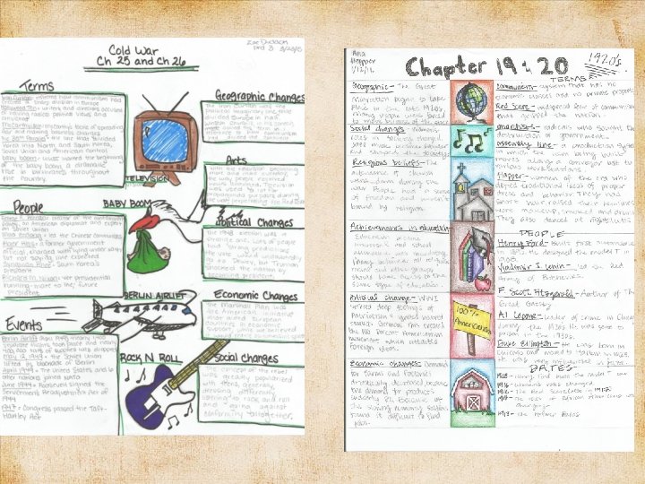 Directions: • Use one sheet white unlined printed paper, writing your name, period, and chapter assigned in the upper left hand corner. • Feel free to use colored pencils, pens, crayons, markers etc. to display your own style. • The more visually appealing, the better you will retain the information in your memory. • It has to be colored!!!