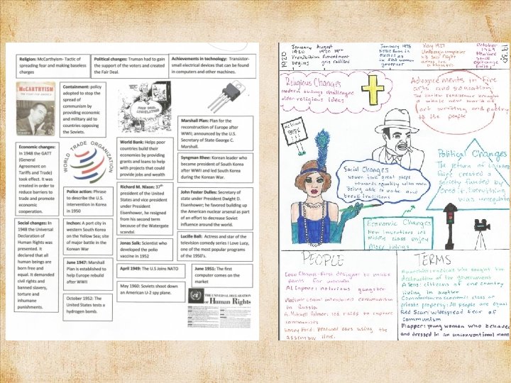 Format 1 Visual and 2 sentences summarizing 5 of the 6 following items -Geographic emphasis/influence/change -Religious beliefs/goals/change or events -Achievements in education/the arts/music/technology -Political changes/events of the time. -Economic changes/ideas of the time -Social Changes in regard to women/races/ethnic groups