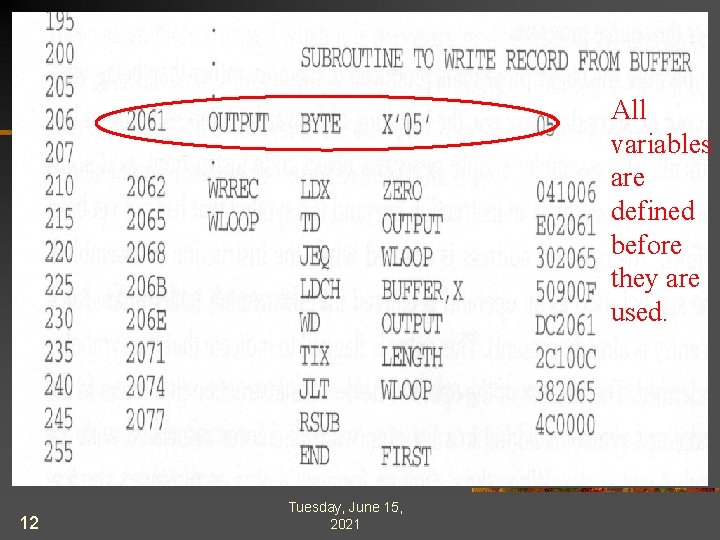 All variables are defined before they are used. 12 Tuesday, June 15, 2021