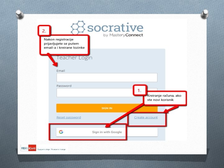 Glavno sučelje - registracija http: //www. socrative. com/