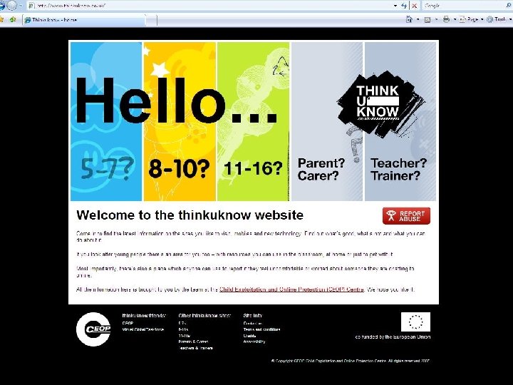 ‘Report Abuse’ in action Some schools and other organisations use this as a link from their websites