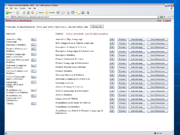 Stufe III: Subject Guides n Online-Listen der Fachressourcen, die ich als Fachreferent mit Hilfe eines Software-Programms organisiere.