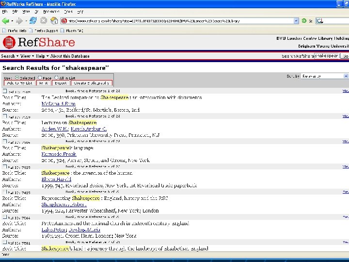 Ref. Works: Warum? Als Ref. Share (online publiziert): Fernbedienung von Übersee Ein OPACchen der BYU London-Centre Bibliothek