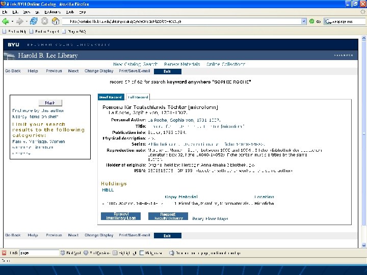 Ref. Works: Warum? Als Ref. Share (online publiziert): Fernbedienung von Übersee Ein OPACchen der BYU London-Centre Bibliothek