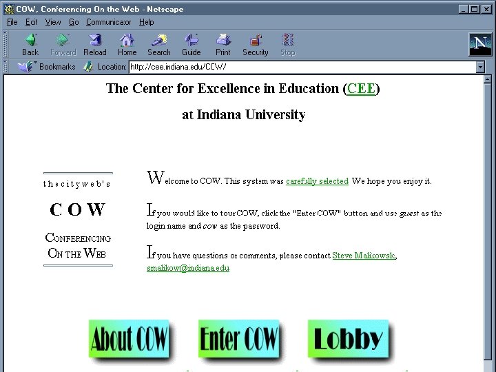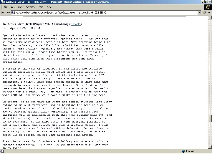 Conferencing On Web (COW) Three Basic Levels: 1. Conference (public or private) 2. Topic (e. g. , special education) 3. Conversation (e. g. , reading rewards)