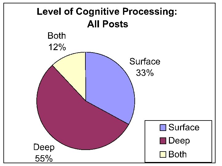 Research on Nine Online Courses • 9 case studies of online classes using asynchronous discussion • Topics: sociology, history, communications, writing, library science, technology, counseling • Range of class size: 15 - 106 • Level: survey, upper undergraduate, and graduate • Tools: custom and commercial • Private, semi-public, and public discussion areas