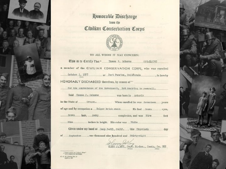 Levensloop Thomas F Osborne § Geboren in Oregon 1919 § Sinds 1920 in Oakland, Californië § 1937: Geslaagd voor high school § 1937 -1938: Civilian Conservation Corps § 1940: Arbeider in cementfabriek § <1943: Getrouwd § 1943: In dienst § 1945: Tail gunner § In 2014: nog in leven? Yvette Hoitink, 15 april 2016