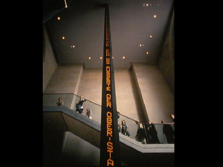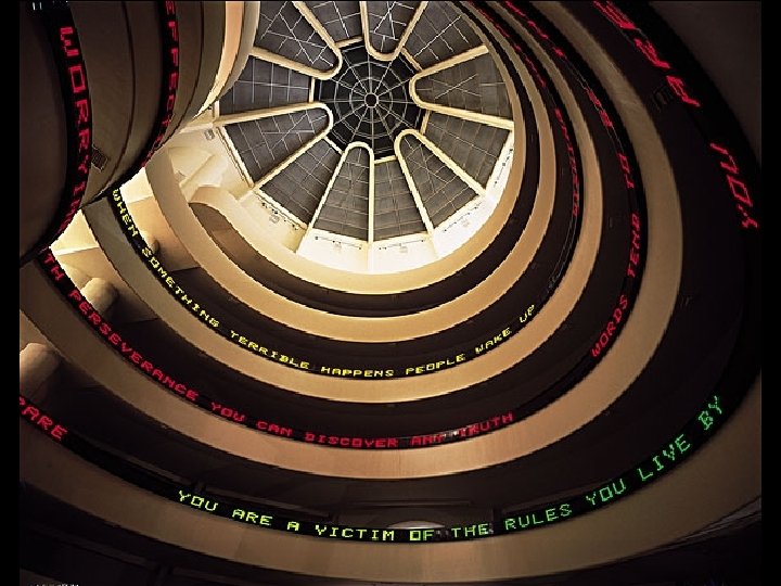 Jenny Holzer As a graduate of Ohio University, the main focus of Jenny Holzer has been on the investigation of ways to disseminate ideas within public space. Since the late seventies, she has been working in the street and in public buildings, using media such as, LCD displays (e. g. , in Times Square, New York) posters and stickers (applied to such urban elements as telephone booths or parking meters), these artworks art intended to stimulate awareness of our social conditioning as conveyed by the very landscape in which we may be confronted by them. "