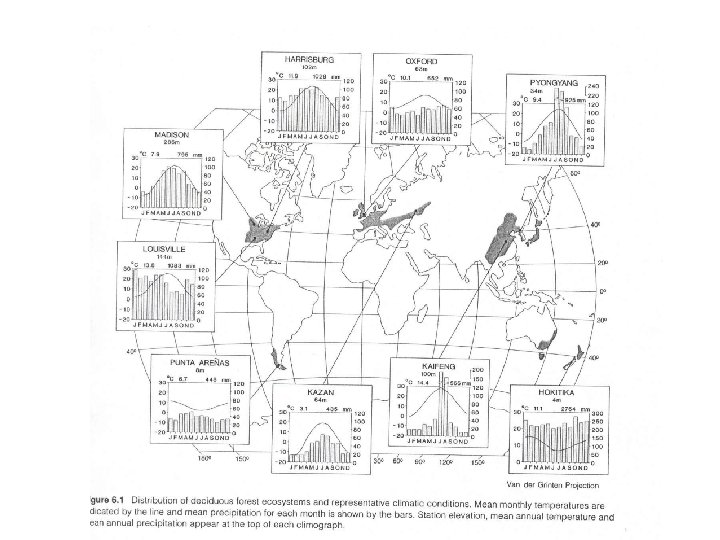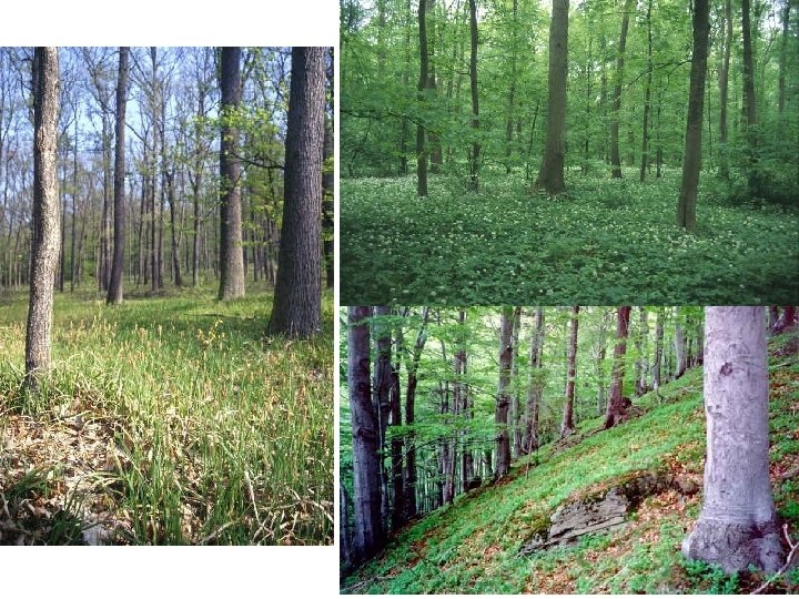 Produkčně-ekologická statistika - stromy mírného pásma jsou C 3 rostliny - fotosyntéza probíhá při 5 -25 C, nejvíce při 10 -20 C. - LAI 3 -12. (trop. les 10 -17; tajga 7 -15; tundra 0, 5 -1, 3) - Biomasa 100 -500 t/ha, nejčastěji 120 -300 t. Kořenová biomasa 30 -80 t/ha. (R: S < 1). - Roční nadzemní produkce (dubový les): nejvíce přírustek dřeva (50%), 26% nové listy, 17% květy, plody a jiný podobný materiál, 5% byliny, 2% keře. - odhad množství opadu: 324 -624 g/m 2/rok.