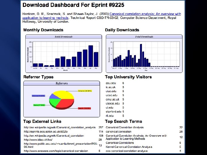 Every e-print tells a story… NIPS Workshop linked to this eprint from its web page Link placed on “Canonical correlation” page in Wikipedia Key Perspectives Ltd