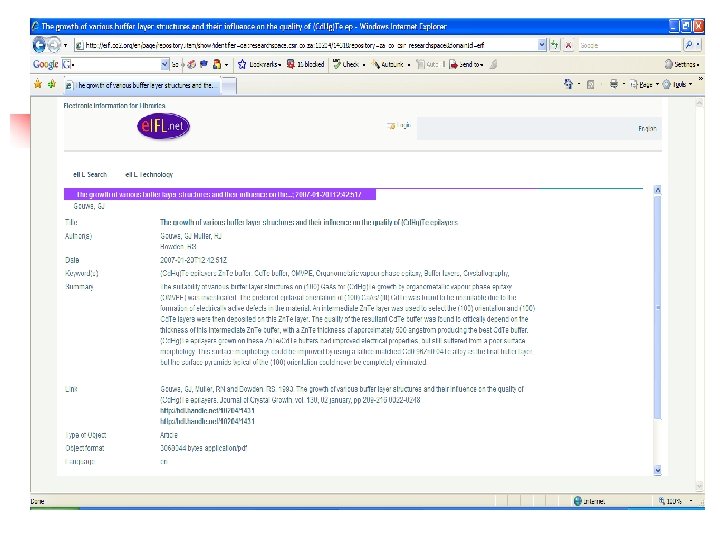 How did e. IFL do it? n n n n 15 countries (SA included), 59 repositories 80 343 items retrieved Decisions what are we going to do with items without FT Sahara (Open Source Harvester) Lucene( Open Source Indexer) Dare (SURF) assisted Register Open. Doar, OAIster and Google