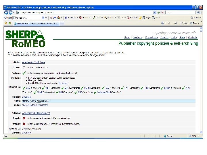Publishers convert to open access n Oxford University Press – Oxford Open Journal of Nucleic Acids, Journal of n n n Botany Springer – Open Choice Blackwell – Online Open Elsevier – hybrid model for six Physics Journals National Academy of Sciences Proceedings of the National Academy of Sciences Sage and Hindawi partnership Taylor and Frances, Wiley, Cambridge…. too many to mention!!!!
