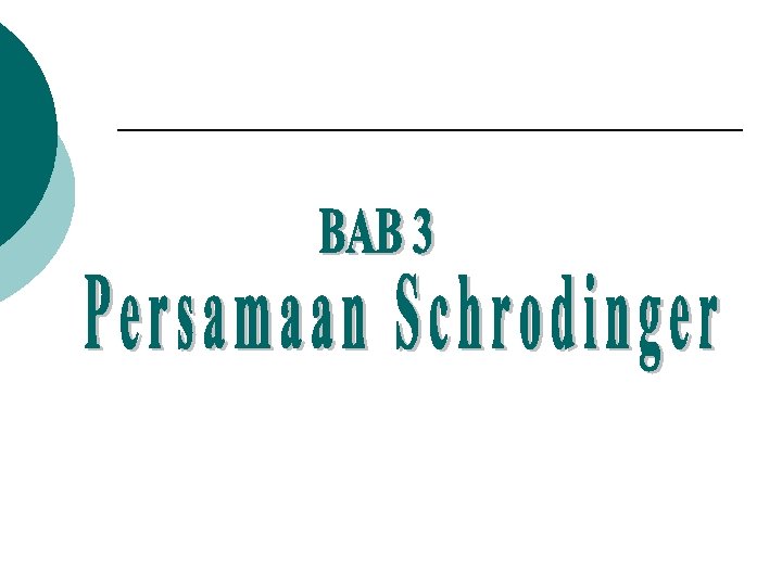 Persamaan Schrödinger Hamiltonian: Operator: Jika H(p, x) dan E dioperasikan pada fungsi gelombang maka diperoleh Inilah persamaan Schrödinger satu dimensi tiga dimensi