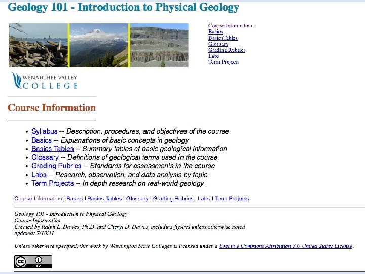 Open Educational Resources in Geology • Lumen Learning open textbook in Physical Geology: https: //courses. lumenlearning. com/geo/ – Originally derived from: https: //commons. wvc. edu/rdawes/g 101 ocl/G 101 OCLindex. html