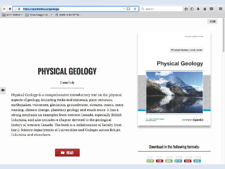 Open Educational Resources in Geology • Another fully open Physical Geology textbook: • https: //opentextbc. ca/geology/