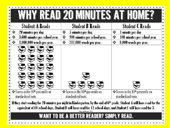 Reading Plus 4. 0 • READING PLUS lessons MUST be completed with 80% comprehension by SUNDAY of the current week in order to receive full credit. • Students should be completing: 3 See. Readers, 3 Read. Arounds, and 3 i. Balances per week. *Periodically students will be given a technology GRADE according to the average comprehension percentage for SEE READER*