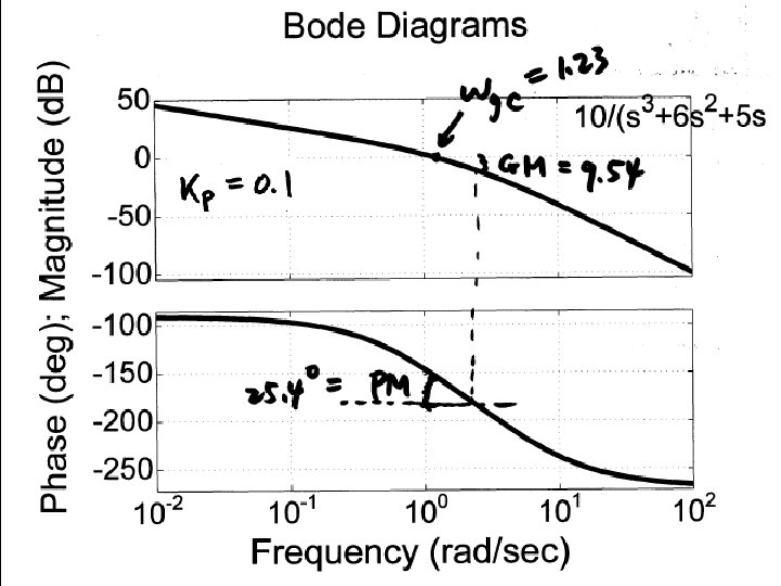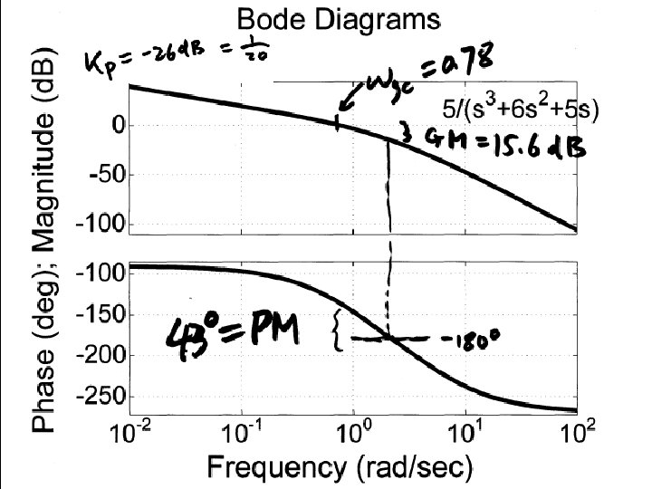 Closed-loop Bode plot by: margin(ncl*1. 414, dcl); Magnitude plot shifted up 3 So, gc is BW