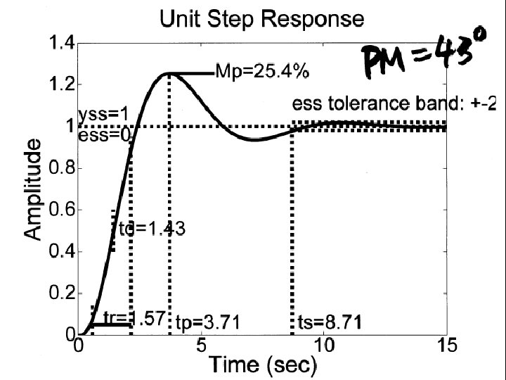 Important relationships • Closed-loop BW are very close to wn • Open-loop gain cross over wgc ≈ (0. 65~0. 8)* wn, • When z <= 0. 6, wr and wn are close • When z >= 0. 7, no resonance • z determines phase margin and Mp: z PM Mp 0. 4 0. 5 0. 6 0. 7 44 53 61 25 16 10 PM+Mp ≈70 67 5 deg % ≈100 z