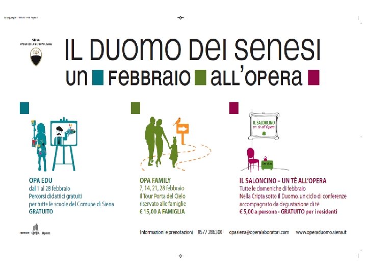 SCOPERTURA DEL PAVIMENTO Nel 2012 è stata attivata la prima campagna pubblicitaria a livello internazionale e nazionale per promuovere la visita alla Cattedrale durante il periodo di scopertura del pavimento.