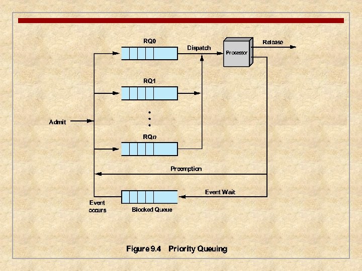 Nonpreemptive Preemptive n n once a process is in the running state, it will continue until it terminates or blocks itself for I/O n currently running process may be interrupted and moved to ready state by the OS preemption may occur when new process arrives, on an interrupt, or periodically