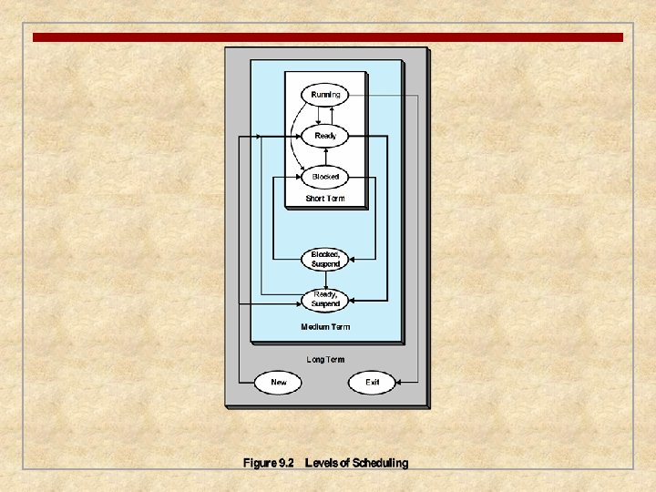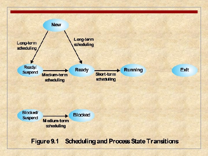 Summary n Types of processor scheduling n Long-term scheduling n Medium-term scheduling n Short-term scheduling n Traditional UNIX scheduling n Scheduling algorithms n Short-term scheduling criteria n The use of priorities n Alternative scheduling policies n Performance comparison n Fair-share scheduling