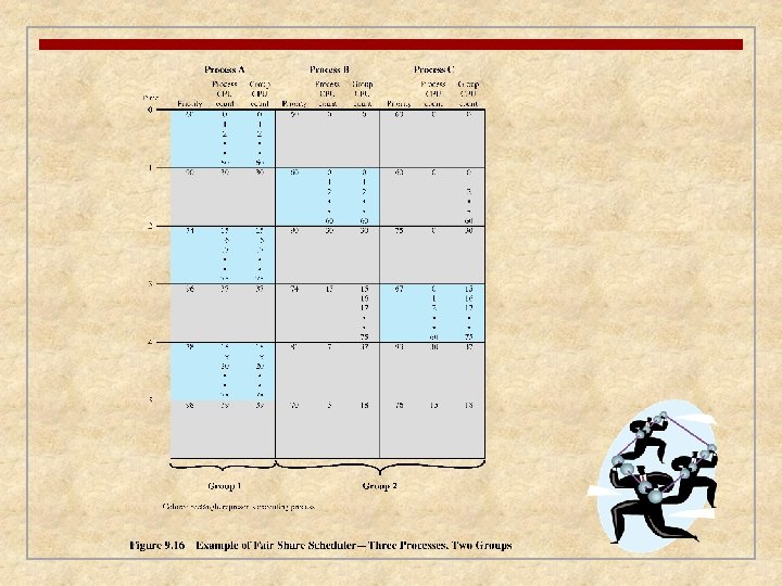 Fair-Share Scheduling n Scheduling decisions based on the process sets n Each user is assigned a share of the processor n Objective is to monitor usage to give fewer resources to users who have had more than their fair share and more to those who have had less than their fair share