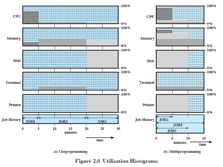 Simple Batch Systems • Resident Monitor program: scheduling, privileged operations • Users submit jobs to operator • Operator batches jobs • Monitor controls sequence of events to process batch • When one job is finished, control returns to Monitor which reads next job • Monitor handles scheduling (e. g. FIFO, SJF)