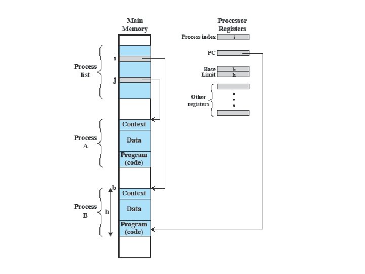 Process – memory image • Consists of three components, segments – An executable program – code segment – Associated data needed by the program – data segment – Execution context of the program • All information the operating system needs to manage the process – process table entry (state, priority, accounting), stack (entered subprocedures, value of PC in suspended mode)