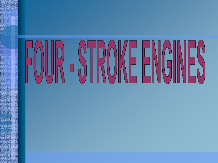 Four-Stroke Engine • Each event occurs with a linear movement of the piston which is called a Stroke. • The cycle of events is completed during two revolutions of the crankshaft 720° degrees, which accounts for the name: FOUR – STROKE CYCLE ENGINE