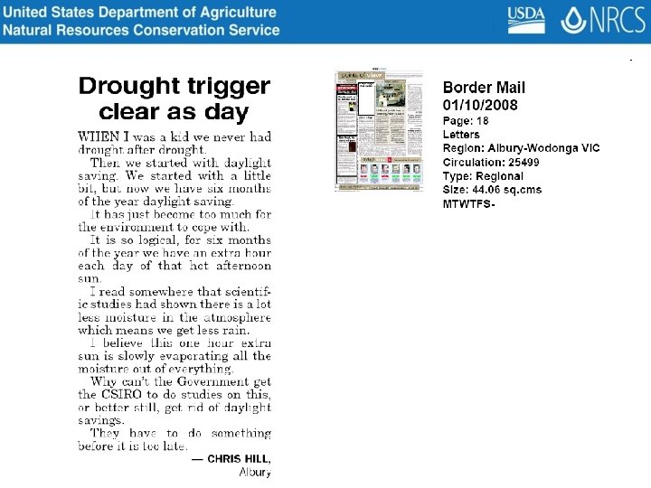 Operational Drought Monitoring and Forecasting at the USDANRCS
