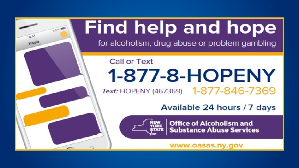 RESOURCES • • Link to NYS OASAS Link to Talk 2 Prevent Link to Combat Heroin Link to the Kitchen Table Toolkit Information on Good Samaritan law Spotlight on Synthetics Download Combat Heroin materials http: //www. oasas. ny. gov/index. cfm http: //talk 2 prevent. ny. gov/ http: //www. combatheroin. ny. gov/kitchen-table-toolkit http: //www. combatheroin. ny. gov/prevention http: //www. oasas. ny. gov/Ad. Med/drugs/Synthetics. cfm http: //www. combatheroin. ny. gov/resources Reach out to your LOCAL PREVENTION and TREATMENT PROVIDERS!!! OASAS Provider Directory: https: //www. oasas. ny. gov/provider. Directory