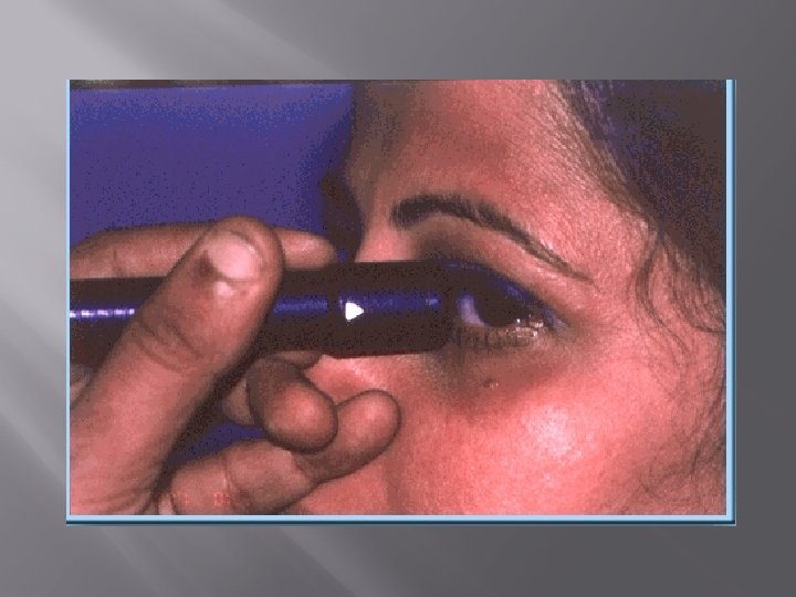 • A modified cup is used for anterior chamber sonography. • The cup fits in between the eyelids. • The cup is filled with normal saline. • The B- scan probe is placed within the saline.