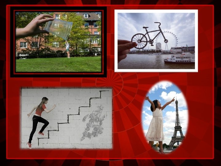 Optical Illusion 3 • 1) Using a ruler and pencil, mark the left and right side of your paper with the same number of marks. If making a symmetrical grid, make sure your marks are evenly spaced at 1 -inch intervals. Connect your marks with horizontal lines. • 2) Using a ruler and pencil, mark the top and bottom of your paper with the same number of marks. If making a symmetrical grid, make sure your marks are evenly spaced at 1 -inch intervals. Connect your marks with vertical lines. • 3) You now have a grid, which is your background. • 4) Trace a circular object on several places of your background. • 5) Mark every other square on your background with an "x" to know where to color. It is easiest to color in the background first. • 6) Mark the opposite squares in your circle to create contrast. You can make the circles appear to be more 3 -dimensional by using curved lines as shown below.