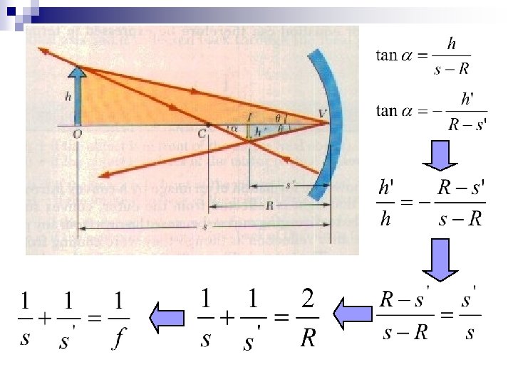 Keterangan : S S 1 h h 1 R f M = Jarak benda = Jarak bayangan = Tinggi benda = Tinggi bayangan = Jari-jari kelengkungan = Titik fokus = Pembesaran f=½R